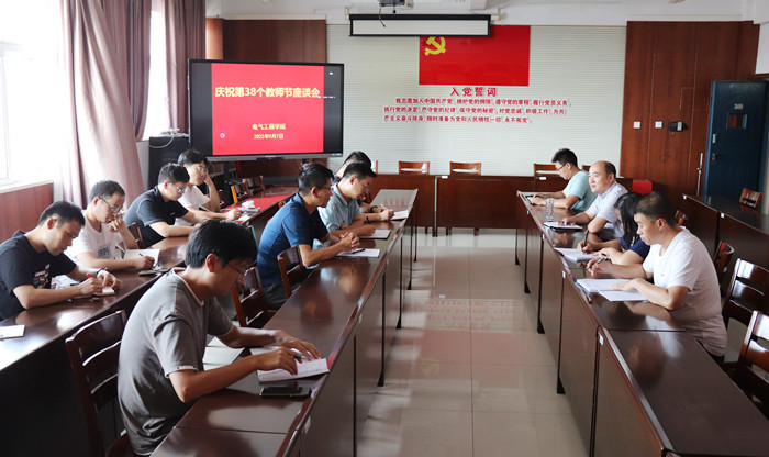 为大力弘扬尊师重教的社会风尚,落实立德树人根本任务,稳步提升教育质量,9月7日,电气工程公司在309室召开庆祝第38个教师节座谈会。电气工程公司副经理兼副书记王郝(主持党政工作)、党总支副书记吕猛、副经理侯春、丁建俊出席会议。