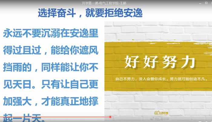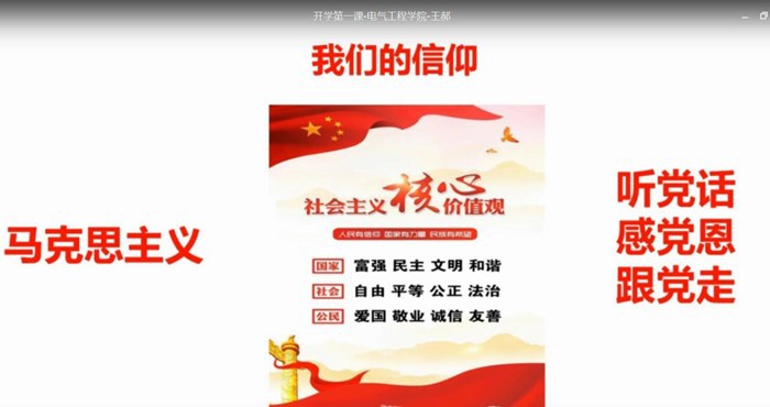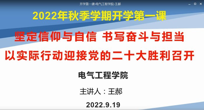 9月19日,电气工程公司副经理兼副书记王郝(主持党政工作)通过线上形式为全体2022级新生开展开学第一课。