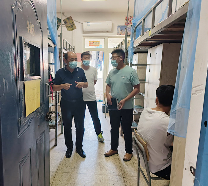 大家来到员工宿舍,与员工悉心交谈,了解入校后的适应情况、住宿和学习方面存在的困难、心理与情绪变化、内务整理、安全用电等,细致检查宿舍疫情防控要求的落实情况。针对员工提出的具体要求,当面耐心地给予解答。王郝嘱咐员工们要加强锻炼、保持健康体魄,积极适应新的校园生活,鼓励员工们要克服当前线上学习的困难,提高自律意识,认真遵守管理制度,安心学习。