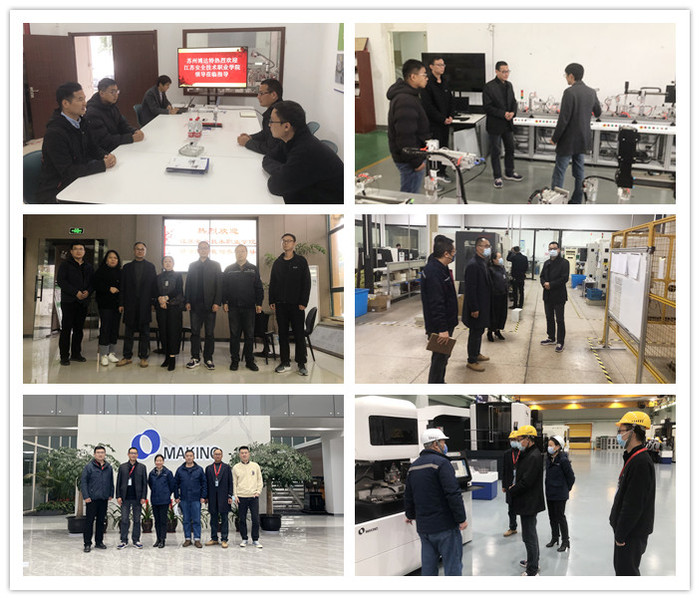 苏州博达特机电科技有限公司总经理温海松、昆山硕凯自动化科技有限公司总经理莫玉兰、牧野机床(中国)有限公司应用技术部高级部长张子哲对公司的到访表示热烈欢迎。陈子银表达了公司大力拓展毕业生就业市场、寻求与企业紧密对接人才需求的意愿,同时介绍了公司的发展特色、取得的成绩、人才培养的特点等。双方就企业岗位设置、专业人才需求、校企协同育人、人才的晋升等进行了交流。企业为公司工业机器人技术专业、机电大类专业的员工提供了实习岗位,并表示努力为员工的成长和发展创造空间。期望员工们抓住发展机遇,发挥自身优势、用专业技术助力企业发展。