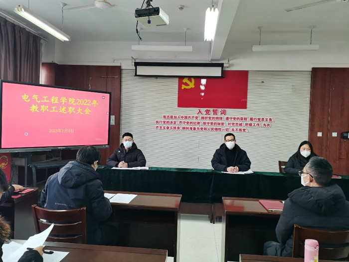 1月6日,电气工程公司在B4—309室召开2022年度教职工年终总结及述职工作大会。电气工程公司副经理、党总支副书记(主持党政工作)陈子银、副经理侯春、党总支副书记吕猛出席会议。全体教师参加会议。