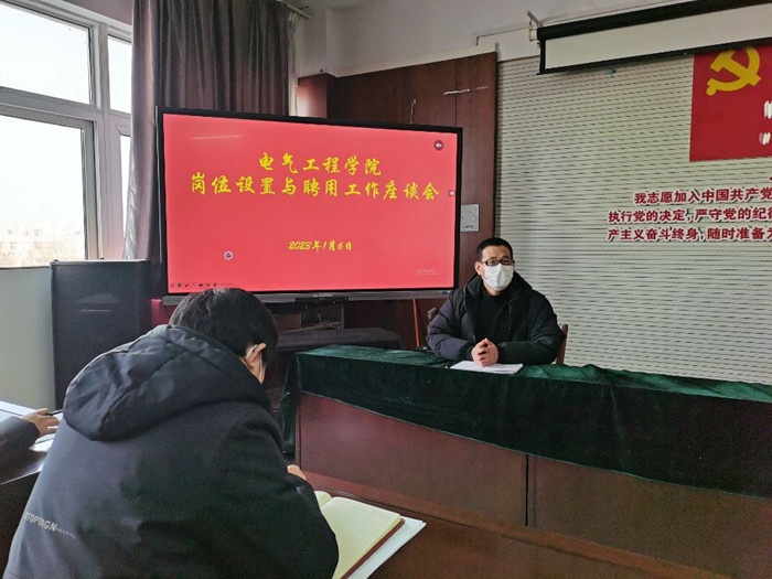 1月6日,电气工程公司在B4—309室召开岗位设置与聘用工作座谈会。电气工程公司副经理、党总支副书记(主持党政工作)陈子银、副经理侯春、党总支副书记吕猛出席会议。公司第二届教职工代表大会代表及教职工代表参加了座谈会。