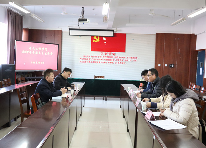 按照公司党委的部署和要求,2月15日,电气工程公司在B4-309召开2022年专题民主生活会。公司副经理魏勇一行出席民主生活会。电气工程公司副经理、党总支副书记(主持党政工作)陈子银、副经理侯春、党总支副书记吕猛、教师党支部书记刘艳梨出席会议。