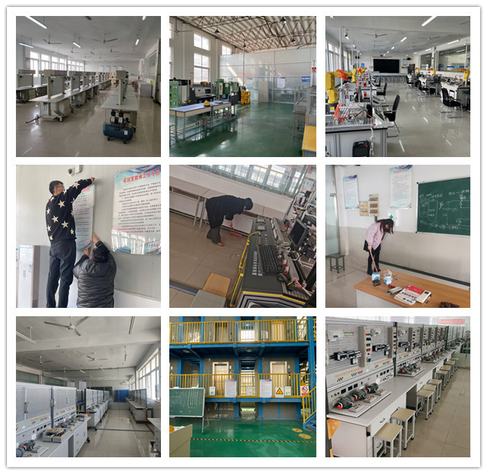 教师们不怕脏不怕累,撸起袖子加油干。打扫认真,不留死角、不留盲区,大家干劲十足,团结协作,劳动场面热火朝天。经过老师们的努力,各实训室焕然一新,呈现新气象。除了卫生的清扫,老师们还张贴了安全规章制度,对实训室的水、电、门窗、消防器材及实训设施等进行严格检查,消除了安全隐患,为实训教学的安全开展夯实了基础。