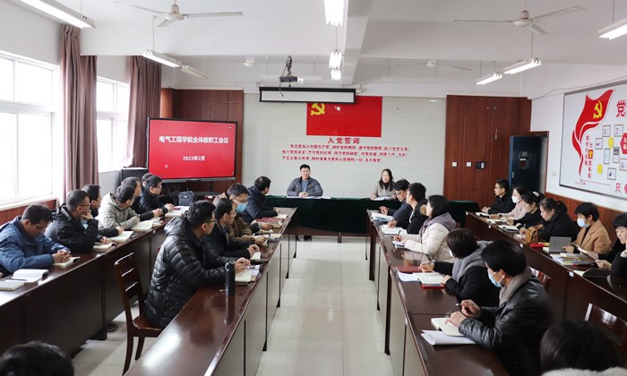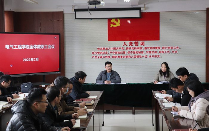 新学期开启新征程,2月17日,电气工程公司在B4-309室召开全体教职工会议。电气工程公司副经理侯春、党总支副书记吕猛出席会议。全体教师参加会议。
