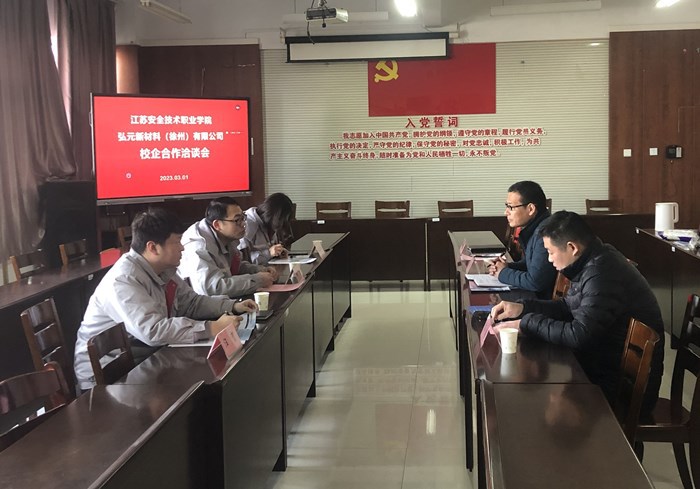 陈子银对弘元新材料(徐州)有限公司一行来访人员表示热烈欢迎,并对公司整体发展情况、办学特色、人才培养进行介绍。同时表示,公司立足专业特色、学科体系,高度重视与企业的深度合作,合理规划产教融合,寻求共建共享模式。乔骋介绍双方开展校企合作的模式。帅杰详细介绍公司的发展情况、产业板块、产教融合项目的需求,表达了要深入合作的意愿,期望双方资源共享、优势互补,共同促进校企共同发展。