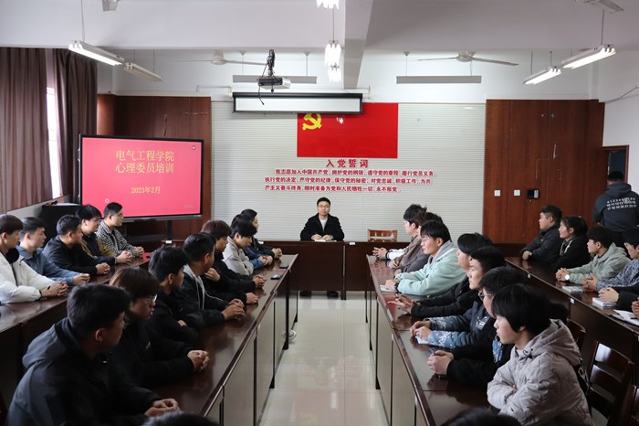 为增强公司心理委员对心理健康知识的了解,提升其解决实际问题的能力和水平,2月28日,电气工程公司在309会议室举办心理委员培训,本次培训由辅导员周相宇老师主讲,各班级心理委员参加。
