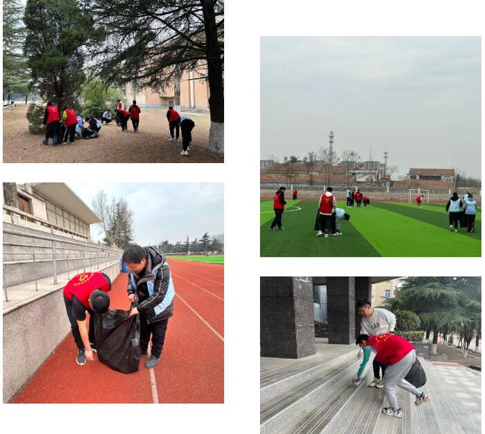 校园是我们的家,我们在这里学习和生活,一草一木都见证着成长。为营造干净卫生的生活环境和文明氛围,倡导同学们爱护校园,组织员工对校园卫生进行了全面清理,其中包括烟头、纸片、牛奶盒,废旧条幅、整理树牌、路标等,爱护环境,人人有责,呼吁我们从小事出发,从身边开始,从点滴做起。