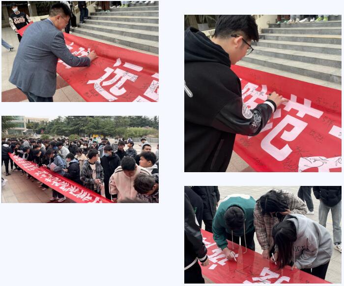 同学们纷纷在“时刻绷紧防范之弦 远离电信网络诈骗”横幅上郑重地签下了自己的名字,并表示以后定会注意电信网络诈骗,时刻保持警惕,擦亮双眼,不给诈骗分子任何可乘之机,避免落入诈骗陷阱。