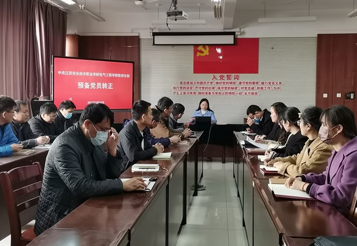 3月23日,电气工程公司教师党支部在309室召开预备党员转正大会。电气工程公司党总支副书记(主持党政工作)陈子银、副经理侯春、教师党支部书记刘艳梨、党总支宣传委员张鹏出席会议。刘艳梨主持会议。