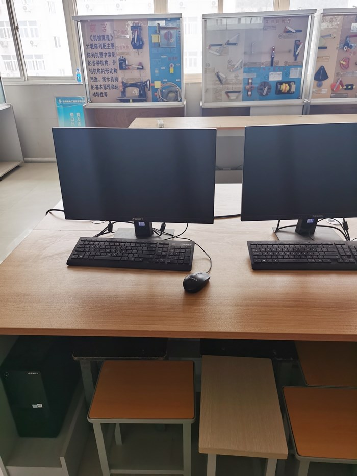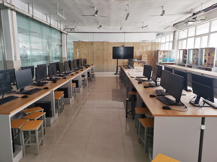 电梯仿真实训室位于综合实训楼B9-505,建设于2021年,占地面积100余平方米。配备计算机35台(计算机为清华同方产品)、示教仪1台、以太网通讯交换机2台(型号为H3C服务器)以及华为远端光接入ONU设备1台(型号为MA5822-16GE),用于电梯结构原理、电梯安装测试、电梯维修保养等课程的软件仿真练习。该实训室也可用于计算机基础课程实操、UG软件应用以及CAD制图等课程的实训。