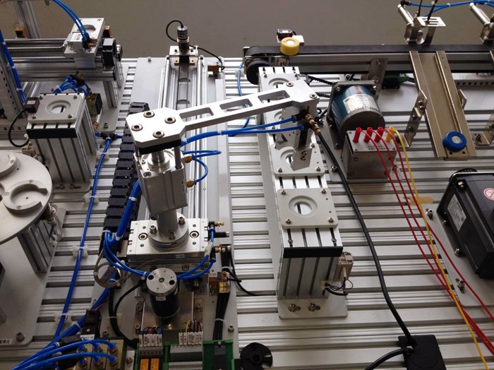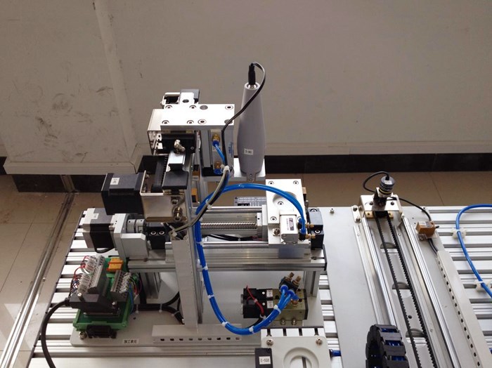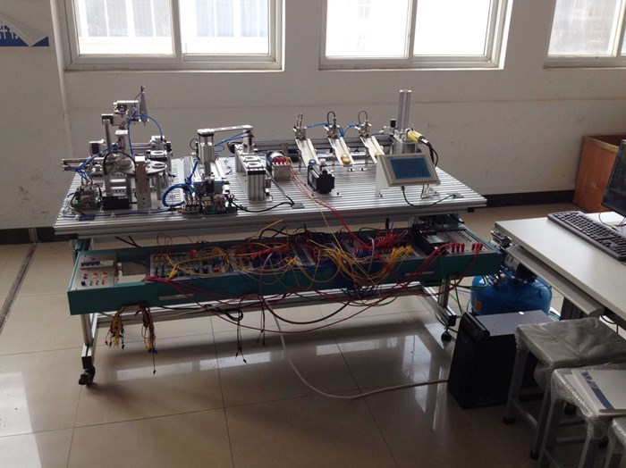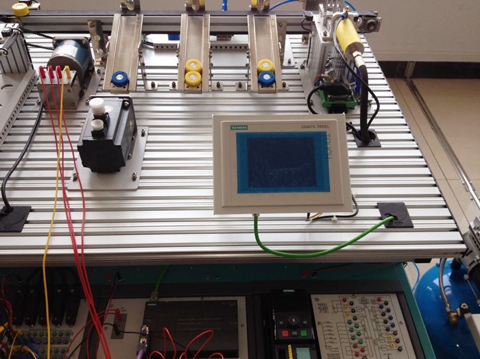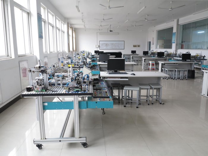 可编程控制器实训室位于实训楼B9-303,建设于2020年,拥有亚龙YL360型设备24台,总价值七十余万。亚龙YL360型可编程控制器实训装置以模块化组合设计,实训台由电源模块、时间控制模块、按钮指示灯模块、PLC模块、变频器模块、触摸屏模块、电机控制模块、步进电机模块、铁塔之光模块、邮件分拣机模块、自控成型机模块、自动轧钢机模块、多种液体混合模块、全自动洗衣机模块、电镀生产线控制模块、交通灯模块、水塔水位模块、自动送料装车系统模块、四层电梯控制模块、直线运动控制模块、小车运动控制模块、自动售货机模块、机械手装配搬运模块、音乐喷泉模块、抢答器控制模块、温度PID控制模块等组成。其模块的多样化既可以满足机电大类下各专业的日常教学,完成电工中、高级工职业资格证书的考核,也是员工集中实习、技能竞赛训练和创新实践的平台,是专业“教学做一体化”的实训室。该实训室可以实现企业真实任务,企业制度管理,行业标准评价,集教学、培训、技能鉴定为一体,为实行“校内工学交替与校外工学交替相结合”的人才培养模式创造条件。