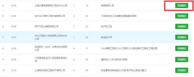 2—在招聘会界面中可看到公司名称(可翻页),选择目标单位,点击单位右侧投递简历按钮,即可进入公司界面;