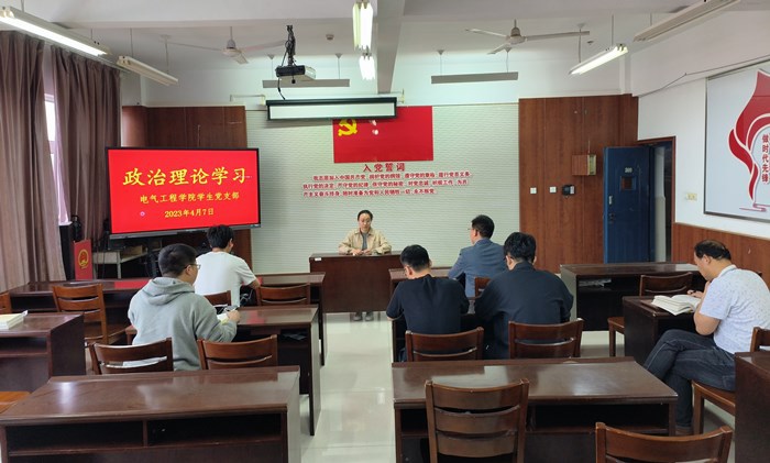 4月7日,电气工程公司员工党支部在B4-309开展4月份理论学习。党总支副书记吕猛主持会议。员工党支部全体党员教师参加学习。