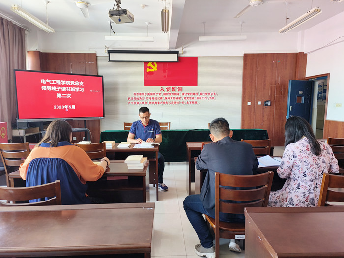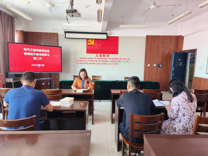 5月10日,电气工程公司党总支领导班子读书班在B4-309开展第二次学习。电气工程公司党总支副书记(主持党政工作)陈子银、副经理侯春、教师党支部书记刘艳梨、党总支宣传委员张鹏出席会议。