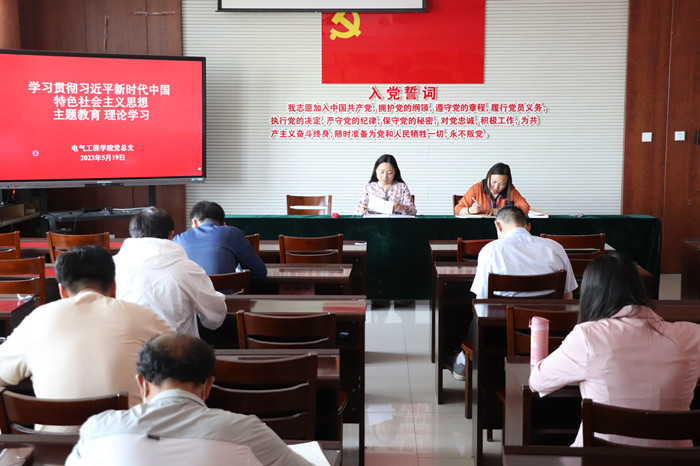 5月19日,电气工程公司党总支在B4-309开展学习贯彻习近平新时代中国特色社会主义思想主题教育理论学习。副经理侯春、教师党支部书记刘艳梨出席会议,公司党员教师参加会议。