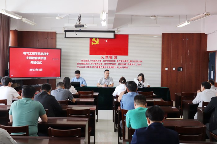 5月8日,电气工程公司党总支在B4-309举行主题教育读书班开班仪式。电气工程公司党总支副书记(主持党政工作)陈子银、副经理侯春、吕猛出席会议。全体教师参加会议。