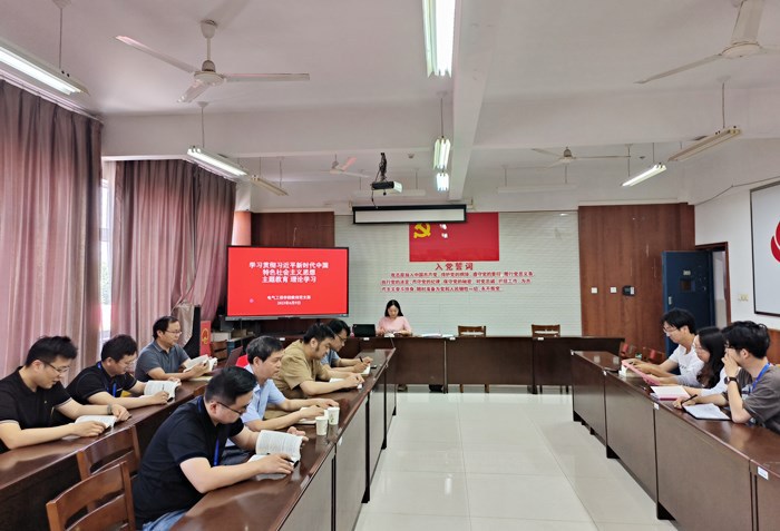 6月9日,电气工程公司教师党支部在B4-309开展学习贯彻习近平新时代中国特色社会主义思想主题教育理论学习。电气工程公司教师党支部书记刘艳梨担任主讲。