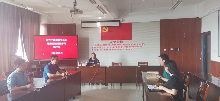 5月11日,电气工程公司党总支领导班子读书班在B4-309开展第三次学习。电气工程公司党总支副书记(主持党政工作)陈子银、副经理侯春、吕猛、教师党支部书记刘艳梨、党总支宣传委员张鹏出席会议。