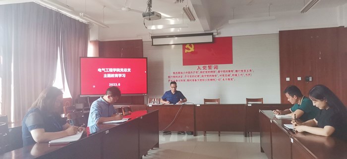 6月12日,电气工程公司党总支在B4-309开展主题教育学习。电气工程公司党总支副书记(主持党政工作)陈子银、副经理侯春、吕猛、教师党支部书记刘艳梨、党总支宣传委员张鹏出席会议。