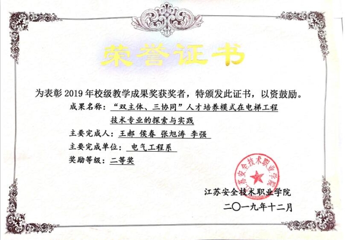 2012.3 江苏省职业公司技能竞赛 荣获电气安装与维修项目 教师组二等奖