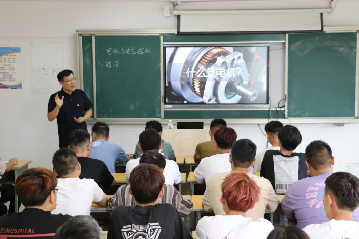 成伯君在B4楼301教室听取了段焜老师讲授的课程《电机与电气控制》,课后与师生们交流互动,肯定了良好的教风班风。成伯君详细了解公司课程安排、课程建设及教学效果等情况。