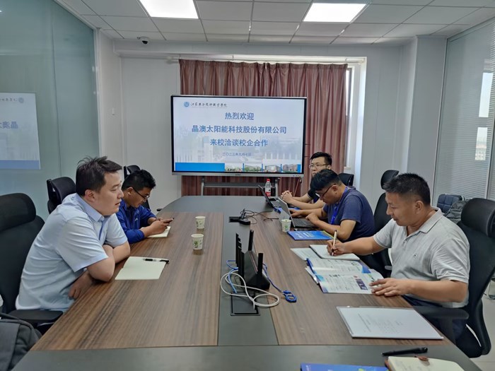 为深化校企交流合作,促进毕业生高质量就业,9月7日,公司与晶澳(扬州)太阳能科技有限必一运动开展校企合作洽谈。公司副经理周中艳、电梯技术教研室主任张旭涛、机电一体化技术教研室主任段焜、晶澳太阳能科技股份有限公司人事部陈杰经理、主管张韬参加了此次合作洽谈。