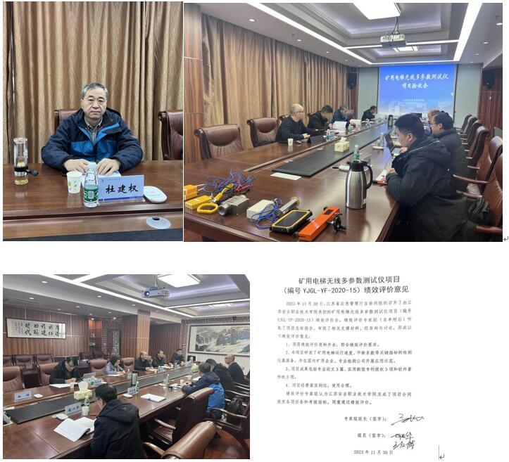 11月30日,江苏省应急管理厅三级巡视员杜建权率专家组一行5人对2020年由公司承担的《矿用电梯无线多参数测试仪》科技研发示范项目进行验收。