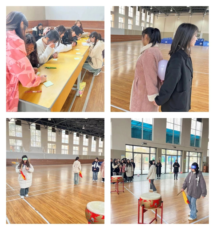此次共开展三个趣味活动。一是“心愿便利贴”几个字,一句话,对未来的憧憬,对自己的期待,对家人的佑护。女生们将自己内心中的美好写在便利贴上,贴在展板上,展示自己的青春愿望。二是“盲人击鼓”戴上眼罩,聆听指挥,认真冷静,终点击鼓。一项看似很简单的心理小游戏,其实验证了人与人之间心灵的交流,只有冷静的相信自己的队友,才能快、准、狠的完成任务。三是“二龙戏珠”两人一组,背夹气球步调一致,相互配合大步向前,切勿心急 。