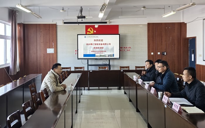 徐州博汇智能装备有限公司副总经理魏贤东介绍公司的基本情况,对公司在产教融合、校企合作方面取得的成效表示赞赏,期待进一步交流,推动合作落地、实现合作共赢。