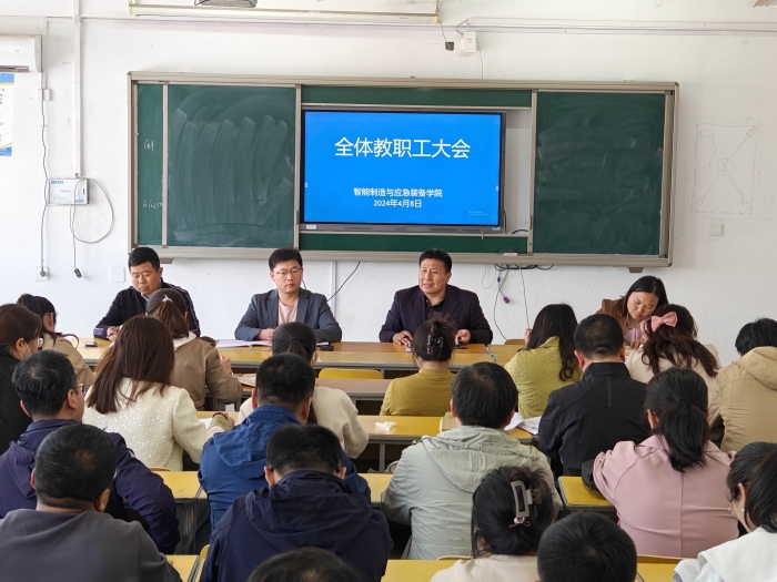 4月8日,公司在B4-409召开全体教职工大会。公司副经理周中艳(主持工作)、党总支副书记(主持工作)吕猛、副经理崔广军、侯春出席会议。