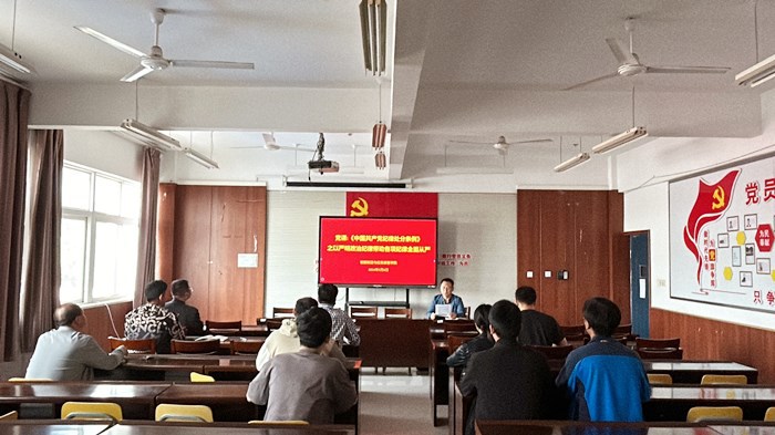 5月6日,公司员工党支部在B4-309开展专题党课。公司党总支副书记邓宝仿担任主讲,党课的主要内容是《中国共产党纪律处分条例》之以严明政治纪律带动各项纪律全面从严。