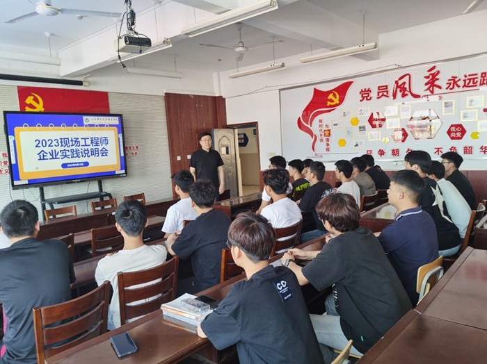段焜老师为员工召开了企业实践动员会,进行了前期安全培训和实践注意事项讲解,明确纪律要求和学习目标。