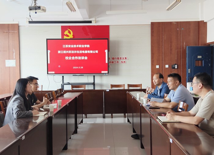 5月28日,浙江绍兴苏泊尔生活电器有限公司到必一运动开展校企合作洽谈交流。公司副经理(主持工作)周中艳及辅导员石风雷、就业老师刘尔晨出席会议。