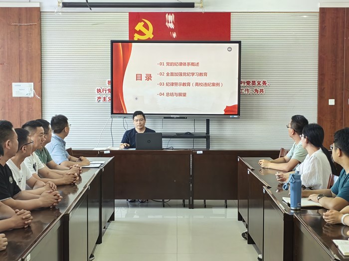 6月26日,公司教师第二党支部在B4-309开展党纪学习教育专题党课。教师第二党支部书记屈海军担任主讲。