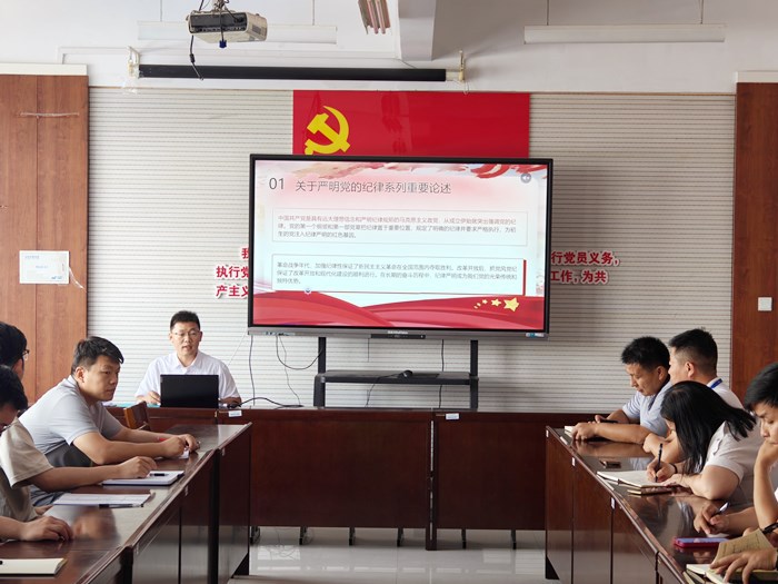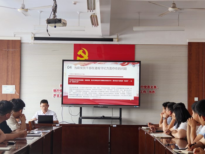 6月27日,公司党总支在B4-309开展党纪学习教育专题党课。公司党总支副书记(主持工作)吕猛担任主讲。