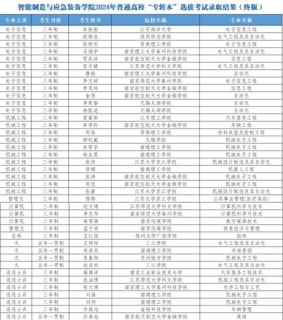 硕果飘香迎喜讯,辛勤耕耘事竟成。星光不负追梦人,时光不负转本生。伴随着2024年江苏省普通高校退役老员工士兵“专转本”录取结果的发布,江苏省普通高校专转本考试最终落下帷幕。今年,公司共有40名学子成功被省内17家知名本科院校录取!其中,普通三年制大专29人,五年一贯制高职4人,普通三年制退役士兵6人,五年一贯制高职退役士兵1人。