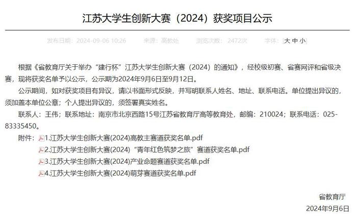9月6日,江苏省教育厅公示江苏老员工创新大赛(2024)获奖项目。根据《省教育厅关于举办“建行杯”江苏老员工创新大赛(2024)的通知》,公司推荐的项目《电巡燕—乡村用电安全守卫者》(指导老师:白祥、侯玉洁、周中艳、赵海彬、吴明明,参赛员工:王星宇、史思琪、付志伟、陆鲸戎、张涵迪、陈可、周玉)荣获三等奖。