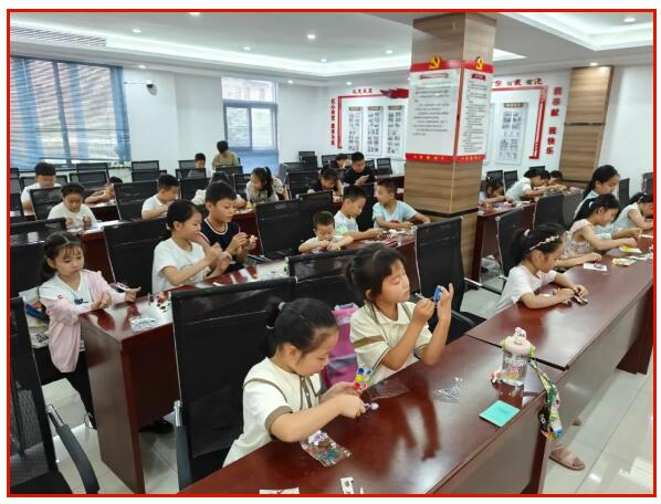 “呵护童心”实践团协助孩子们绘画石膏娃娃和拼搭积木,石膏素坯和多彩的绘画工具,一颗颗积木零件和说明书激发孩子们的创作热情。