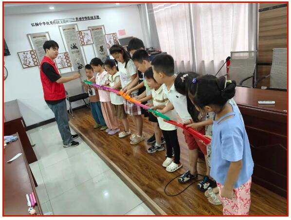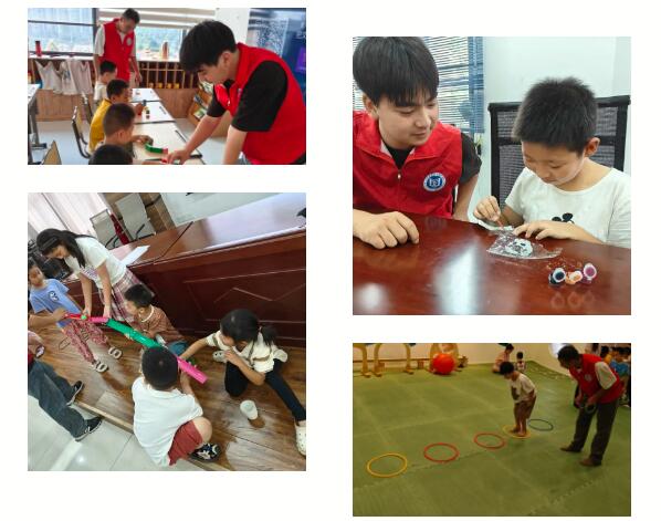 “呵护童心”实践团成员开展“珠行万里”心理趣味游戏,孩子们通过U型槽共同传递一个圆球,从一次次的失败,吸取教训,调整策略到最后成功将球送入杯中。让同学们感受团队间的配合、衔接和合作,提高合作协作意识,凝聚“心”力量。