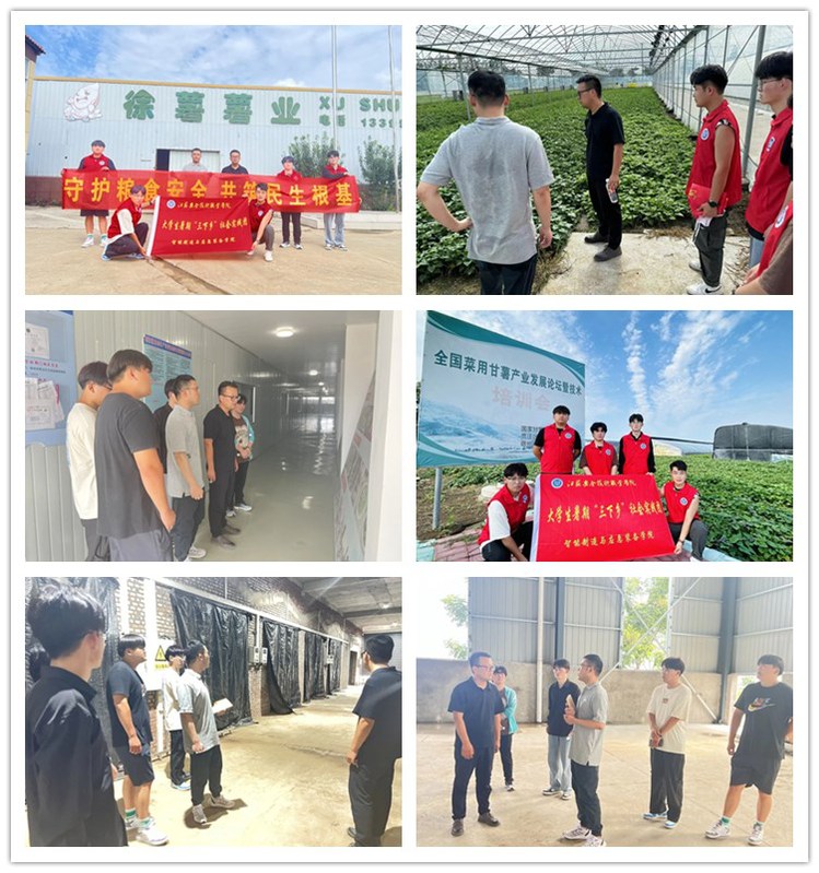 8月14日,实践团成员来到徐州市贾汪甘薯科技小院,跟随“全国农业杰出实用人才”、“江苏省劳动模范”、“江苏省‘三带’名人”、徐薯薯业科技有限公司总经理袁起先生参观甘薯加工生产车间、观察当地甘薯生长情况,了解甘薯产业发展现状及种植品种、种植面积、产量、销售渠道以及面临的问题和困难等情况。