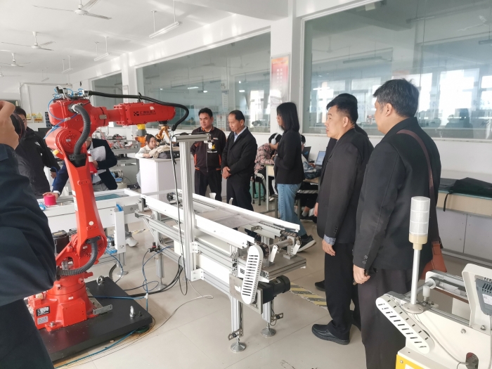 10月25日,“中文+职业技能”泰国教育基地专业骨干教师参观公司实训室。必一运动副经理周中艳(主持工作)陪同参观公司实训室。