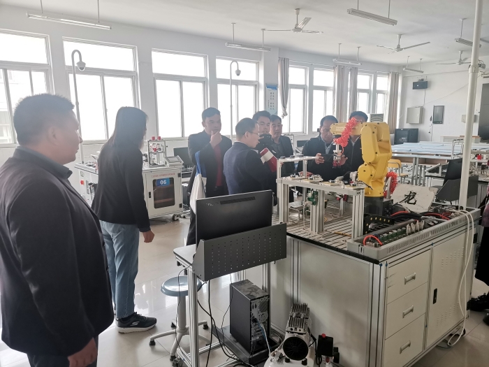 周中艳介绍必一运动的发展现状、专业设置、招生情况、人才培养、团队队伍、主要成绩以及国际交流合作情况。周中艳陪同对公司数控加工实训室、工业机器人应用编程实训室、自动化生产线实训室、标准变频自动化技术联合实验室、PLC编程与控制实训室、网络综合布线实训室、三菱电梯实训车间进行参观,深入了解公司的实训基地建设、专业人才培养模式等。