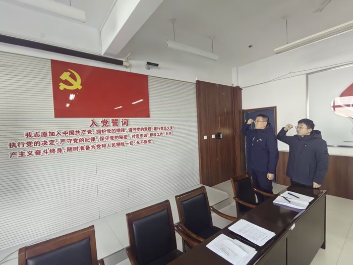 张波同志作表态发言,表达了加强学习,努力工作,坚定不移跟党走,为党贡献力量的决心;随后吉强带领预备党员张波同志面对党旗进行入党宣誓。