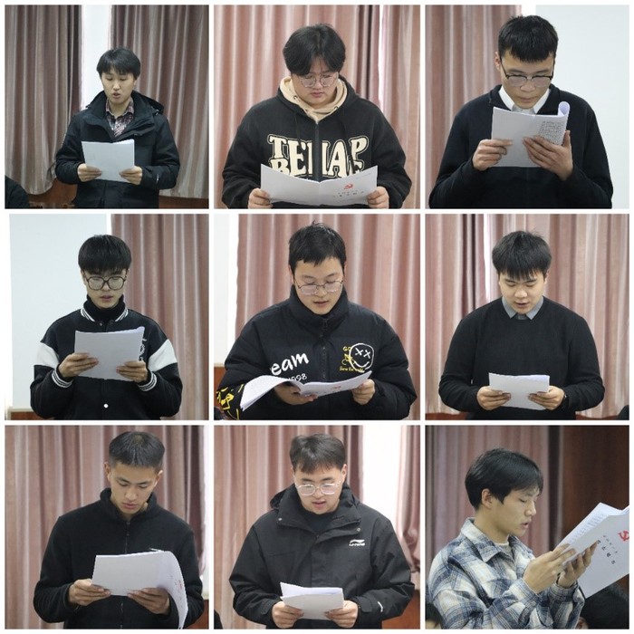 王晟旭清点到会党员人数,符合开会条件,宣布大会的议题和具体流程。此次大会接纳9名预备党员。王晟旭宣布大会正式开始。全体起立奏国歌。