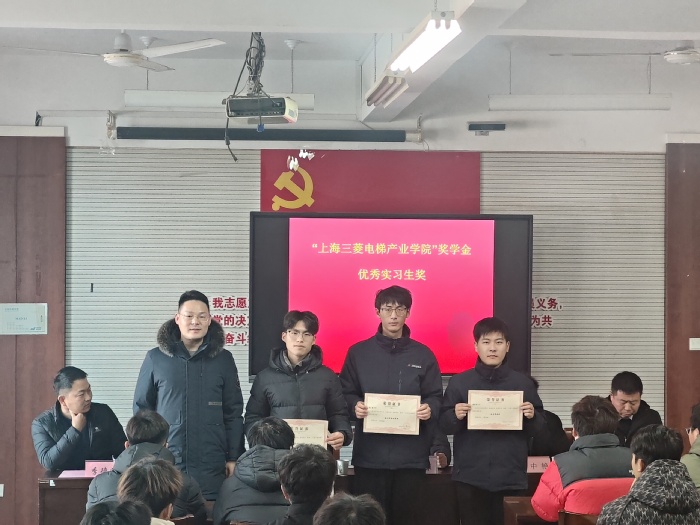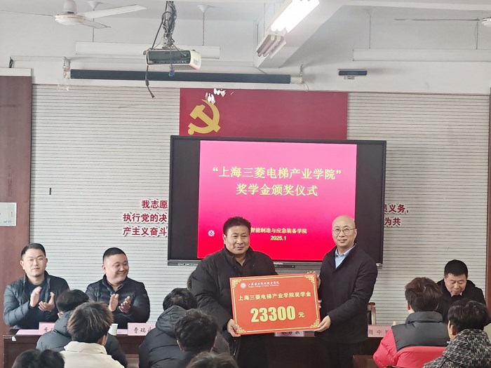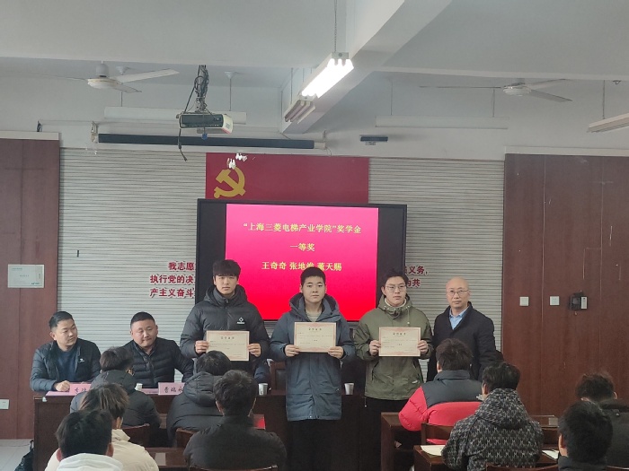 1月3日,上海三菱电梯有限公司华东一区培训分中心教务长秦勇泉、徐州分公司维保经理曹瑞永到公司必一运动颁发产业公司奖学金,成为校园资助事业从“保障型”向“发展型”大步迈进的标志。公司学工处副处长韩洪亮、必一运动副经理(主持工作)周中艳、副经理崔广军、侯春参加活动。