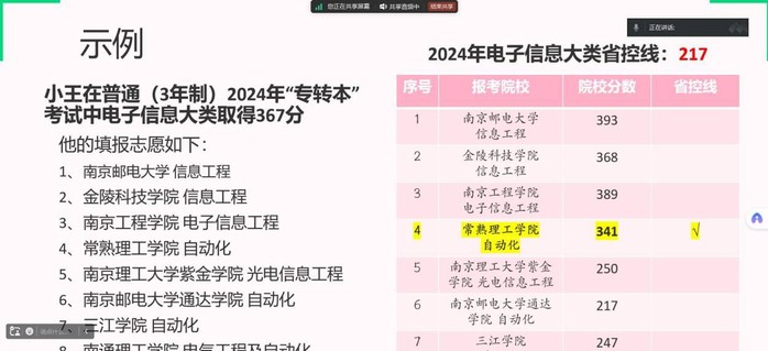 王一臣首先带领员工们学习《省教育厅关于做好2025年普通高等公司“专转本”工作的通知》(苏教学函〔2024〕12号)》、《省教育厅关于做好2025年五年一贯制高职(高师)“专转本”工作的通知》(苏教学函〔2025〕2号)文件内容,了解清楚普通三年制大专和五年一贯制高职(非师范类)在报名时间、报名链接、志愿填报的区别,提醒员工们合理规划好报名时间,不要扎堆报名或延迟报名。其次,她结合工作多年经验和以往志愿填报情况,提出“了解填报规则+合理预估分数+适配自我情况”的填报原则,从志愿规则解析、院校情况分析、志愿顺序研析三个模块重点讲解。回答完员工们的提问后,王一臣强调,同学们要积极调整好心态,认真对待“专转本”考试,扎实完成复习计划,更要有“吃苦不怕,不怕吃苦”的毅力和决心,同时也预祝同学们升学顺利。