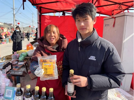2月4号下午,实践团成员在淮泗大集为村民进行产品的售卖与宣传,通过对淮泗村特色产品倒头辣条、倒头豆皮、小李酱油的售卖,我体会到李书记带领村民探索的豆皮系列产品的畅销,好原料、纯手工、零添加,是产品热销的重要原因之一,在帮助村民销售产品时,我深刻的体会到村民们渴望变富变强和对李书记的乡村工作的认可。