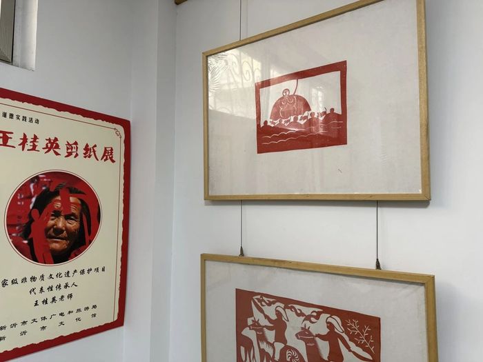 新沂市合沟镇作为徐州剪纸的传承地,以线条粗犷、造型古拙、构思奇特、不拘泥于传统而出名。新沂剪纸的代表性人物为国家级传承人王桂英老师,在接续传承中创新求变,更多地采用了写意手法,不追求形似,以简约的刀法表达了心目中的生活,以剪为笔、以图叙事,用剪纸书写“生活史诗”,使得新沂剪纸在众多剪纸艺术中独树一帜,成为了不可多得的艺术珍品。