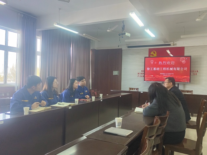 4月2日上午, 徐工基础工程机械有限公司张书记刘部长一行来必一运动洽谈人才培养和就业实习合作事宜。